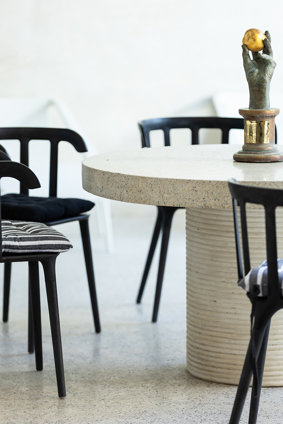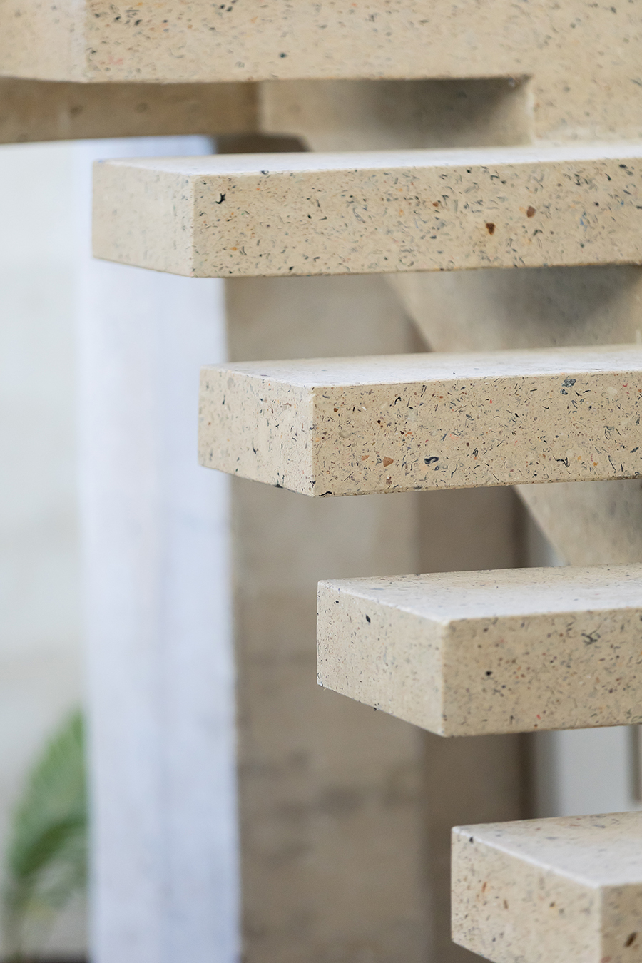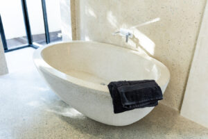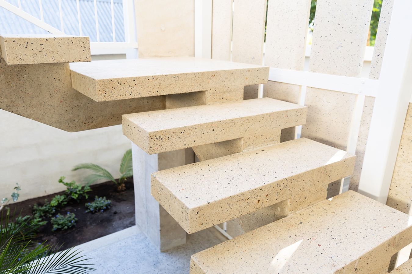 Inside, the home features custom countertops, basins, bathtubs, and furniture—all moulded from recycled industrial waste. This build proves that sustainability and design can go hand in hand.